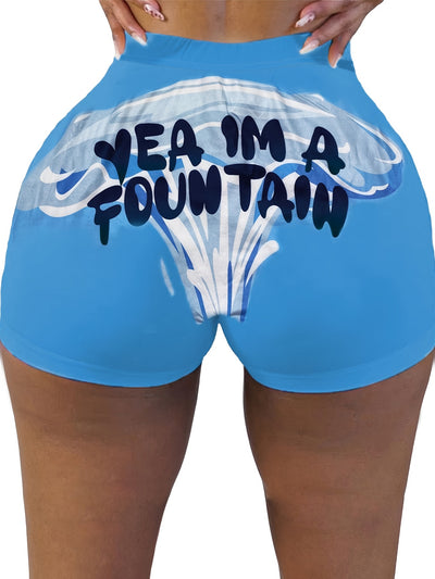 Letter Print Skinny Shorts, Casual Yoga Shorts For Spring & Summer, Women's Clothing