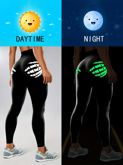 Vibrant Skeleton Hands Printed High Waist Sports Yoga Leggings - Moisture-Wicking, Four-Way Stretch, Comfortable, and Breathable - Perfect for Halloween, Carnival, Music Festival, and Workout Enthusiasts